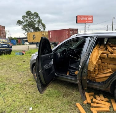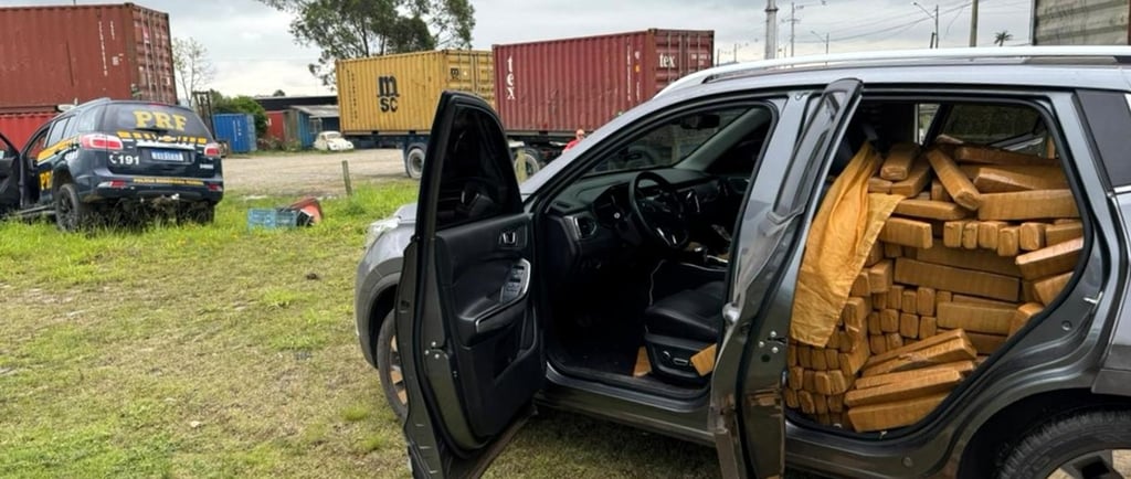 Na manhã de ontem quinta-feira (2), a Polícia Rodoviária Federal realizou uma grande apreensão de drogas em Itajaí. Um veículo Chery Tiggo 5X, com registro de roubo e placas clonadas, foi flagrado transportando mais de uma tonelada de maconha. Segundo a PRF, o motorista desobedeceu a ordem de parada e iniciou fuga em alta velocidade pela BR-101. Poucos quilômetros depois, abandonou o carro e tentou escapar correndo, mas acabou preso pelos agentes. Dentro do automóvel, os policiais localizaram 1.034 quilos do entorpecente, que foram levados para pesagem na Delegacia da Polícia Federal de Itajaí. O condutor, um homem de 28 anos, declarou que a carga havia sido buscada na fronteira com o Paraguai e tinha como destino Florianópolis. Ele foi preso em flagrante e responderá por tráfico de drogas.