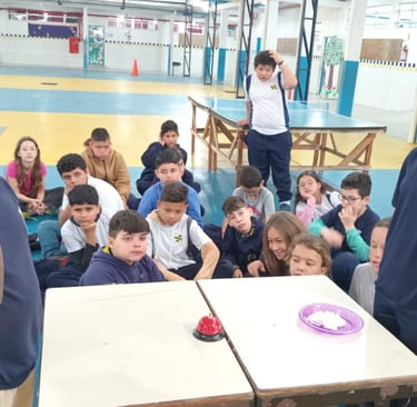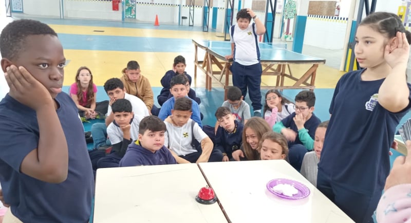 Entre risadas e chantili, os estudantes do 5º ano da Escola Básica Elias Adaime viveram uma manhã diferente e animada com a atividade “Torta na Cara do SAEB”, realizada na última quarta-feira (8). A proposta transformou a revisão de Português e Matemática em um momento leve, divertido e cheio de aprendizado. Durante o jogo, os alunos responderam perguntas relacionadas aos conteúdos das disciplinas e, a cada erro, levavam uma “torta na cara” de chantili, tudo em um clima de amizade e descontração. Ao final, os três estudantes com melhor desempenho receberam premiações em reconhecimento ao esforço e dedicação. Mais do que revisar conteúdos, a iniciativa teve como objetivo motivar e preparar os alunos para o SAEB de forma criativa, reforçando o aprendizado e fortalecendo o vínculo entre colegas e professores.