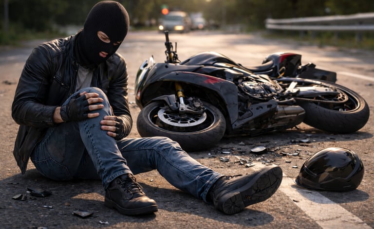 CRIME MAL-SUCEDIDO: LADRÃO SE FERE AO CAIR COM MOTOCICLETA ROUBADA EM ITAJAÍ