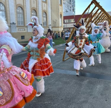 A cidade de Itajaí será tomada pelo clima mágico da Páscoa neste sábado (28), com o desfile “Uma Doce Páscoa”, que começa às 16h na Rua Hercílio Luz. O evento contará com a participação de mais de 150 artistas, levando ao público um espetáculo ao ar livre pensado para todas as idades. Com apresentações coreografadas, figurinos criativos e um forte apelo visual, o desfile promete envolver o público em uma experiência imersiva, destacando talentos locais e incentivando a convivência cultural. A proposta vai além de uma celebração temática, convidando famílias e visitantes a vivenciarem a Páscoa de maneira leve e encantadora, transformando a rua em um grande palco artístico. O cortejo será composto por 10 alas coreografadas, cinco destaques especiais e três estruturas alegóricas, criando um ambiente lúdico inspirado no universo pascal. Entre os destaques estão a Ala Jardim Encantado, grupos como Coelhos Fantásticos, Coelhos Peraltas, Coelhos Fofinhos e Coelhos Retrô, além dos personagens “Docinho” e “Coelhinha”, que guiarão o público ao longo da apresentação. As estruturas alegóricas também prometem chamar a atenção, com elementos como a Árvore de Ovos Coloridos, a Bike de Doces e o Coreto da Páscoa. O desfile ainda contará com alas temáticas, como a Ala Cupcake, os Coelhos dos Ovos Dourados e grupos de coelhos sobre patins, além da participação de oficinas de dança do programa Aqui Tem Arte, ampliando a diversidade cultural do evento. Além do desfile principal, a programação de Páscoa se estende por diferentes pontos da cidade, como as praças Arno Bauer, dos Correios, Malburg e Vidal Ramos, com atividades recreativas para crianças entre 11h e 15h. Programação completa: Sábado (28) 📍 Praça dos Correios 11h às 15h – Pintura de ovos 11h às 15h – Recreação com coelhinhos 📍 Praça Arno Bauer 11h às 15h – Pintura de casquinhas de ovos 13h às 15h – Passeio de trenzinho com personagens 📍 Rua Hercílio Luz 10h – Cortejo de Páscoa 16h – Desfile “Uma Doce Páscoa” 📍 Praça Malburg 10h às 12h e 13h às 15h – Feira de adoção de animais (UAPA) 10h às 12h e 13h às 15h – Pintura facial 📍 Praça Vidal Ramos 11h – Recreação com coelhinhos 11h15 e 14h – Caça aos ovos 13h – Apresentação musical com a banda Tom Peixeiro Domingo (29) 📍 Praça dos Correios 15h às 17h – Banda infantil e pintura facial 15h às 17h – Pintura de ovos 15h às 17h – Recreação com coelhinhos A programação promete um fim de semana cheio de diversão, cultura e momentos especiais para toda a família.