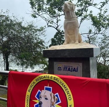 ICE, O PRIMEIRO CÃO GUARDA-VIDAS DO BRASIL, GANHA MONUMENTO EM ITAJAÍ 🐾💛