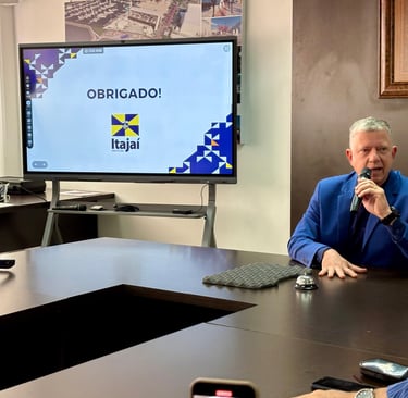 A Prefeitura de Itajaí apresentou oficialmente, em uma coletiva de imprensa realizada no gabinete do prefeito, a nova identidade visual do município. O lançamento também incluiu uma prestação de contas das ações desenvolvidas pela Secretaria Municipal de Comunicação ao longo de 2025. O grande destaque da nova identidade é a valorização da bandeira de Itajaí, que passa a ser o principal elemento da marca institucional da cidade. Anteriormente, o brasão era utilizado isoladamente. Agora, a bandeira, que é composta por oito triângulos alternados nas cores azul e amarelo, junto ao brasão centralizado, passa a representar o município de forma mais integrada e simbólica. O novo slogan da cidade, “Itajaí é agora”, reflete um momento de evolução e modernização, transmitindo um sentimento de pertencimento e orgulho para a população. Para o Secretário de Comunicação, Calebe Moreno, a nova identidade é um reflexo do crescimento e da mudança constante de Itajaí. “Com linhas leves no design e uma proposta de crescimento, através dos triângulos implementados, a nova identidade mostra ao cidadão que Itajaí é agora! Uma cidade que cresce com trabalho contínuo”, afirmou. A bandeira de Itajaí tem um simbolismo profundo: o azul representa o céu, a justiça, a nobreza, a dignidade e a perfeição, enquanto o amarelo evoca a riqueza e a confiança. Esses significados são traduzidos no design da nova marca, que alia leveza, dinamismo e ação, refletindo o momento de transformação da cidade. “Nós unimos o brasão e a bandeira e criamos uma marca mais viva e mais forte. Essa nova identidade faz com que a população itajaiense se identifique com os valores do município e se sinta valorizada”, declarou o vice-prefeito, Rubens Angioletti. A nova identidade visual já começa a ser aplicada de forma imediata nos canais digitais e redes sociais da Prefeitura, além dos uniformes da rede municipal de ensino que serão usados a partir de 2026. No futuro, a marca será expandida para diversos espaços públicos, incluindo o paço municipal, totens turísticos, lixeiras e outros locais representativos da cidade. A proposta é que essa nova identidade seja um reflexo visível do crescimento de Itajaí, reforçando seu compromisso com a modernização e o fortalecimento da imagem de sua comunidade.