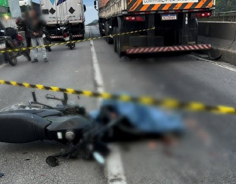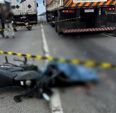MOTOCICLISTA MORRE EM COLISÃO COM CAMINHÃO E FILA DE 24 KM SE FORMA NA BR-101, NO LITORAL DE SC