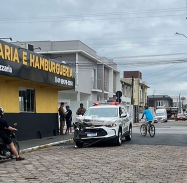 VIATURA DA PM SE ENVOLVE EM COLISÃO DURANTE PERSEGUIÇÃO A MOTOCICLISTA EM ITAJAÍ